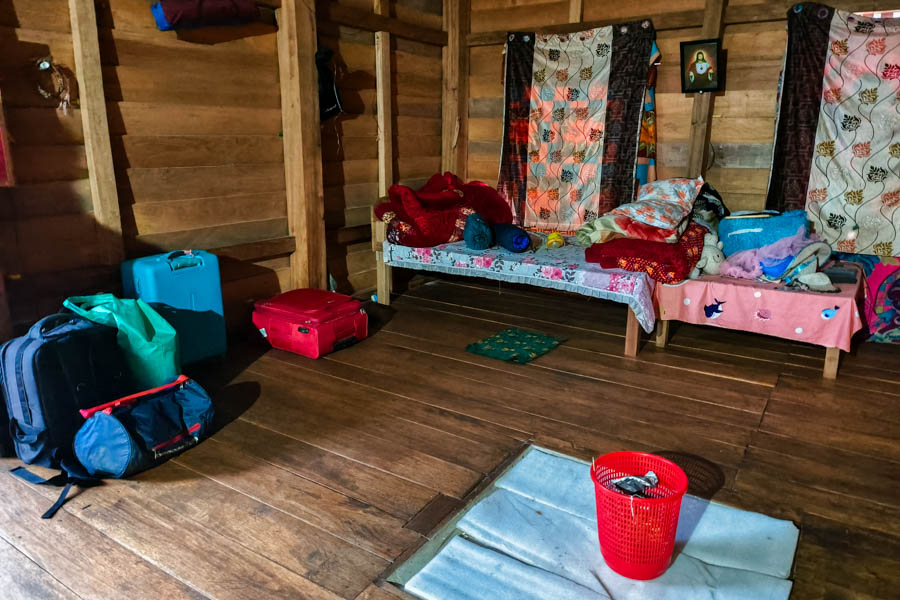 It was a simple wooden house with a separate room where we could sleep. There was no electricity — only a couple of solar lamps for limited lighting. The toilet was outside in the compound, so any midnight visit required a short walk in complete darkness.