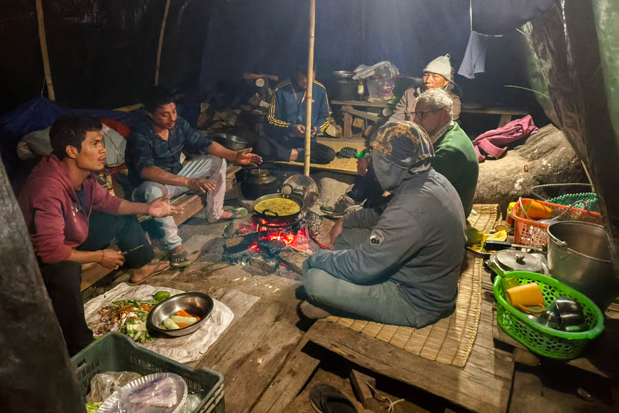 Once settled, we were pleasantly surprised to be served hot tea with biscuits, and not just black tea, but tea with milk. Considering how remote the area was, this was possible only because Binanda had carried fresh milk with our supplies. A small but thoughtful detail.